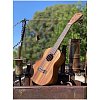 Эта укулеле сделана из индонезийского тика. Помимо того, что это просто невероятно красивое дерево с полосатой текстурой, оно обладает потрясающим объемным и ярким звучанием. Накладка на гриф - железное дерево (ironwood), сам гриф выполнен из меранти - очень красивого и вместе с тем прочного дерева, похожего на махагони.